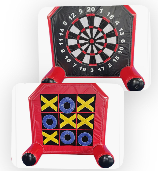 Darts on one side and Tic Tac Toe on the other side.