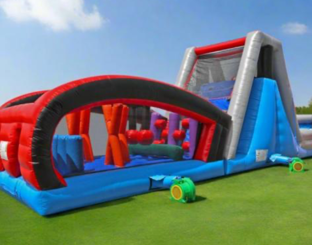 This fun and unique water slide obstacle course is a combination of two categories of inflatable rides everyone loves and enjoys. Riders will go through countless obstacles and popups, climb up a tall climber and down the slide into a pool. A water mister sprays the riders as they slide down into the fun U-shaped splash zone. This Unique design allows for easy monitoring of riders. Riders get to cool down and compete one another in a fun and safe inflatable ride.